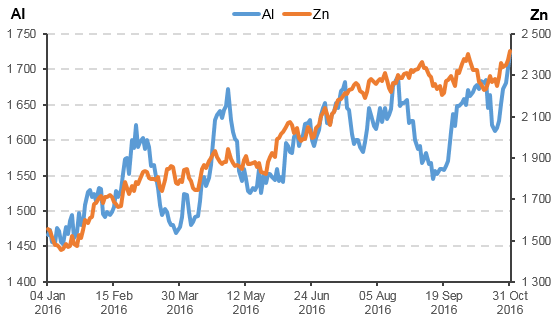 Рынок алюминия и цинка, октябрь 2016