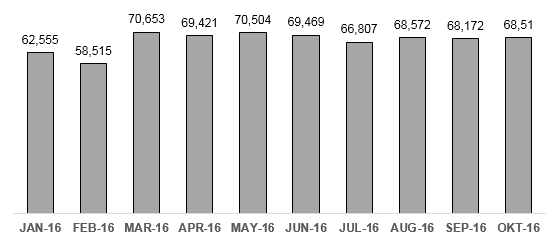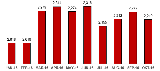 Объем выплавки стали за первые 10 месяцев 2016 года составил 673,178 млн. тонн, что на 0,78% или 5,197 млн. тонн выше, чем за первые 10 месяцев 2015 года, когда было произведено 667,981 млн. тонн стали.