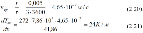 Температурный градиент в жидкой фазе при отсутствии конвективного перемешивания металла, что имеет место в пограничном слое, равен: