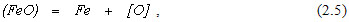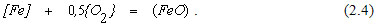 В традиционных сталеплавильных процессах содержание железа в жидком металле обычно составляет 90% и более, поэтому главным продуктом реакций в первичной реакционной зоне является FeO. Образовавшийся в первичной реакционной зоне оксид железа частично растворяется в металле по реакции