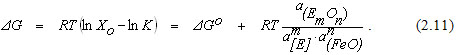 Из описанного выше механизма реакций следует, что при продувке ванны газообразным кислородом происходит одновременное окисление всех без исключения компонентов металлического расплава. При этом с наиболее высокими скоростями протекают реакции, которые максимально удалены от состояния термодинамического равновесия. Мерой отклонения системы от равновесного состояния может служить величина изменения энергии Гиббса, которая для реакции