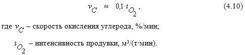 При продувке металла в кислородном конвертере в периодах плавки, когда вдуваемый в ванну кислород расходуется главным образом на окисление углерода, скорость обезуглероживания металла можно оценить из уравнения