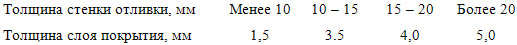 Из рассмотренных способов наибольшей точностью обладает способ дозирования по массе. При производстве чугунных и стальных отливок в металлических формах обычно используют сыпучие теплоизоляционные покрытия. Перед заливкой форму очищают от остатков теплоизоляционного покрытия сжатым воздухом и нагревают до 150 – 200оС. Такую температуру изложницы поддерживают и при последующих заливках. Затем форму закрывают крышкой, включают двигатель машины и с помощью лотка засыпают в изложницу сыпучий теплоизоляционный материал – сухой песок, просушенный и просеянный через сита № 0063 и № 005. Ниже представлены сведения о рекомендуемой толщине слоя покрытия при изготовлении отливок с разной толщиной стенки: