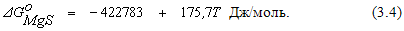 Магний является активным десульфураторм расплавов железа. Для определения стандартного значения изменения энергии Гиббса реакции