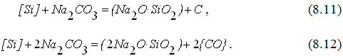 Кальцинированная сода может также использоваться и для предварительного обескремнивания чугуна по реакциям