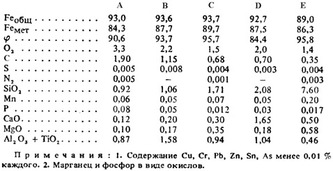 Общим для всех сортов было низкое содержание цветных примесей, серы и азота. Содержания кислорода, колебавшегося в пределах от 1,4 до 3,3%, во всех случаях было достаточно для окисления имевшегося в железе углерода.