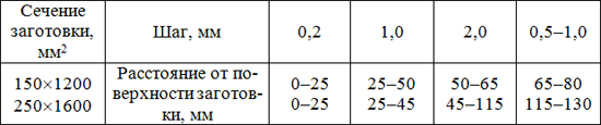 В результате проведенных исследований пришли к выводу, используя специфику опытной машины, о целесообразности более интенсивного охлаждения формирующейся заготовки, чем на существующих вертикальных и криволинейных МНЛЗ. При этом было установлено, что увеличение интенсивности охлаждения до 1,2…1,8 л/кг благоприятно влияет на качество внутренней структуры и никак не влияет на качество поверхности.