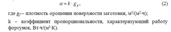 Использование зависимости (2) позволяет перейти от коэффициентов теплоотдачи к значениям плотности орошения поверхности заготовки.