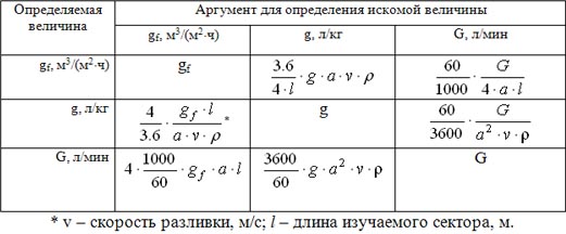Расход охладителя удобен для управления работой секторов и отслеживания количества израсходованного охладителя. Для удобного взаимного пересчета этих величин авторами предложены расчетные зависимости, приведенные в таблице 1.