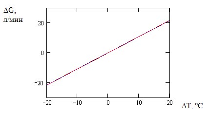 Рис. 2. Зависимость корректирующего расхода воды в зависимости от перепада измеренной и рекомендуемой температур