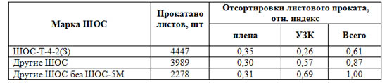Рис. 5. Отсортировка листового проката низколегированных марок стали по дефектам сталеплавильного производства: импортные ШОС; ШОС Т-4
