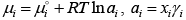 Химические потенциалы компонентов во всех фазах гетерогенной системы (включая газовую) выражаются через активности (по Льюису): .