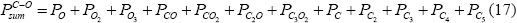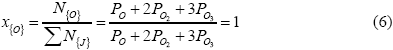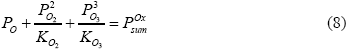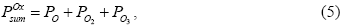 Задавая общее давление POxsum и температуру системы, и вычисляя значения констант диссоциации многоатомных молекул кислорода KO2 и KO3 (по данным [10]) определяем парциальное давление атомарного кислорода из уравнения: