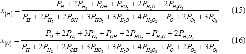 Как и в предыдущей системе в рассматриваемой два конечных компонента, при этом эти компоненты могут образовывать девять различных молекулярных форм - H, H2, O, O2, O3, OH, HO2, H2O, H2O2. Образованием ионов и электронов пренебрегаем ввиду малых их концентраций в сравнении с молекулярными формами.