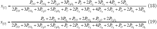 Система состоит из двух компонентов, однако в отличие от рассмотренных выше двухкомпонентных систем система углерод – кислород при металлургических температурах (1773-2173К) и концентрациях углерода выше 0,5 переходит из однофазной (газовая фаза) в двухфазную (в системе появляется конденсат углерода). Паровая фаза чистого углерода согласно данным [18] представлена пятью видами молекул – С, С2, С3, С4 и С5.