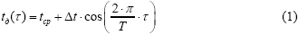 где tср – средняя температура продуктов сгорания, покидающих рабочую камеру, oС; t – амплитуда колебания температуры, oС; T – период колебания температуры продуктов сгорания, с.