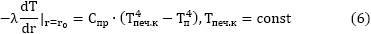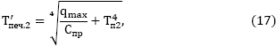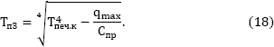 затем температура печи плавно увеличивается до Тпеч.к. Это происходит в течении периода 2-3 при постоянном тепловом потоке qmax, а температура поверхности заготовки достигает значения, определяемого из уравнения лучистого теплообмена