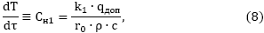 в течение которого тепловой поток достигает центра, и считается, что температура центра остается неизменной, а скорость нагрева поверхности уменьшается. (k – коэффициент формы, a1 - коэффициент температуропроводности при 1, м2/с). После инерционного участка в регулярном режиме температуры изменяются линейно со скоростью Cн1, пропорциональной допустимому тепловому потоку qдоп: