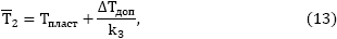 Среднемассовая температура заготовки в конце периода qmax=const определяется по скорости нагрева Сн2