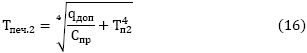 до достижения конечного значения температуры печи Тпеч = Тпеч.к.