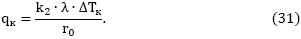 а перепад температур T, пропорциональный тепловому потоку qдоп, остается постоянным. (c – удельная теплоемкость, Дж/(кг*К); p – плотность, кг/м3; k1 – коэффициент материальной нагрузки, зависящий от формы поперечного сечения заготовки).