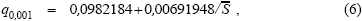 Согласно протоколу обработки экспериментальных данных при найденных значениях коэффициентов в уравнении (6) коэффициент корреляции R = 0,44, что свидетельствует о существовании статистически значимой зависимости между 0,001 q и при уровне доверия 95%.