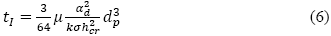 Расчёт вероятности закрепления включения PA базируется на сравнении времени скольжения включения по поверхности пузырька и времени индукции tI, которое требуется для того чтобы жидкая плёнка между пузырьком и включением истончилась до критической толщины hcr, при которой возникает трёхфазный контакт. Выражение для расчёта tI было получено Шульцем [3]:
