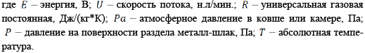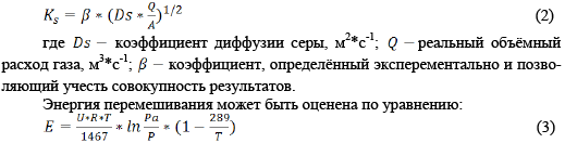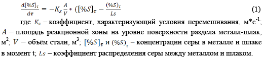 Для установок различных размеров и объёмов жидких фаз получено удовлетворительное описание реакций металл-шлак при десульфурации в ковшах с перемешиванием инертным газом, выражающее Ks в следующем виде:
