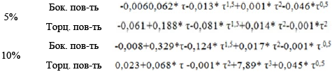 Построение графиков аналитических зависимостей показало, что они не являются линейными, а объем водорода, выделившегося за время проведения испытаний на электрохимическую коррозию образцов, имеет степенную зависимость, а именно степенную зависимость 2-го и 3-го порядка. При этом максимальное коррозионное разрушение наступает в торцевой поверхности, причем с повышением концентрации подкисленного раствора интенсивность коррозионных процессов увеличивается, например: