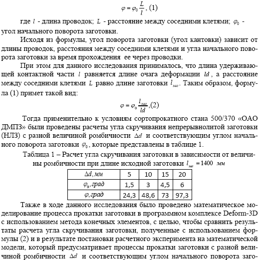 Для оценки максимального угла скручивания переднего конца заготовки была использована формула, которая применяется при расчете геликоидальных проводок.