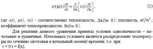 Основой для создания математической модели нагрева металла в методической печи является дифференциальное уравнение теплопроводности, описывающее одномерное температурное поле.