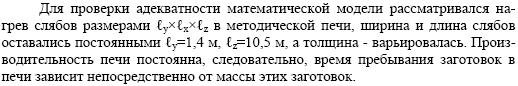 Таким образом, в результате моделирования нагрева металла при постоянной производительности печи и различной толщине заготовки имеется возможность получения более экономных режимов нагрева металла. Варьирование толщины заготовки приводит к изменению времени нагрева, что в соответствии с полученными результатами может достигаться изменением времени пребывания металла в зонах печи. Это, в свою очередь приводит к изменению скорости продвижения металла в печи. Моделирование температурных режимов приводит к экономии энергоресурсов.