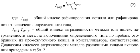 Проведен сравнительный анализ рафинирования металла от различных включений путем сопоставления индексов рафинирования: