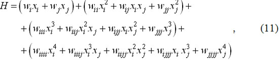 - энергия химических связей i-j. Если рассматривать взаимодействия вплоть до 4-го порядка (ТСРИР), то энтальпию двухкомпонентного раствора необходимо записать в виде: