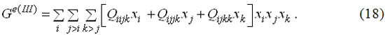 Первое слагаемое – сумма двойных взаимодействий по всем бинарным системам, которые имеются в рассматриваемой многокомпонентной системе, второе слагаемое – то же самое, но для тройных систем. При необходимости, аналогичным образом можно учесть взаимодействия и в системах более высокого порядка (четверные системы и выше). Функции и