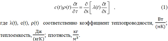 Заготовки в методической печи лежат вплотную друг к другу. При таком расположении заготовок для моделирования нагрева металла в методической печи воспользуемся дифференциальным уравнением теплопроводности, описывающим одномерное температурное поле, которое в этом случае имеет вид: