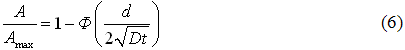 Концентрацию атомов Fe, продиффундировавших в пленку оксида, можно рассчитать, используя решение уравнения диффузии для случая, когда диффузия происходит из постоянного источника в пленку конечной толщины: