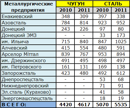 “Февраль предприятия отработали неплохо. Были некоторые сбои (...), но в целом среднесуточное производство было выше уровня 2010 года”, — заявил председатель ассоциации “Металургпром” Василий Харахулах, открывая балансовое совещание представителей предприятий горно-металлургического комплекса в Днепропетровске в среду.